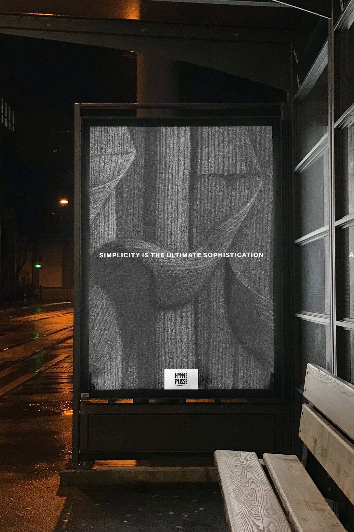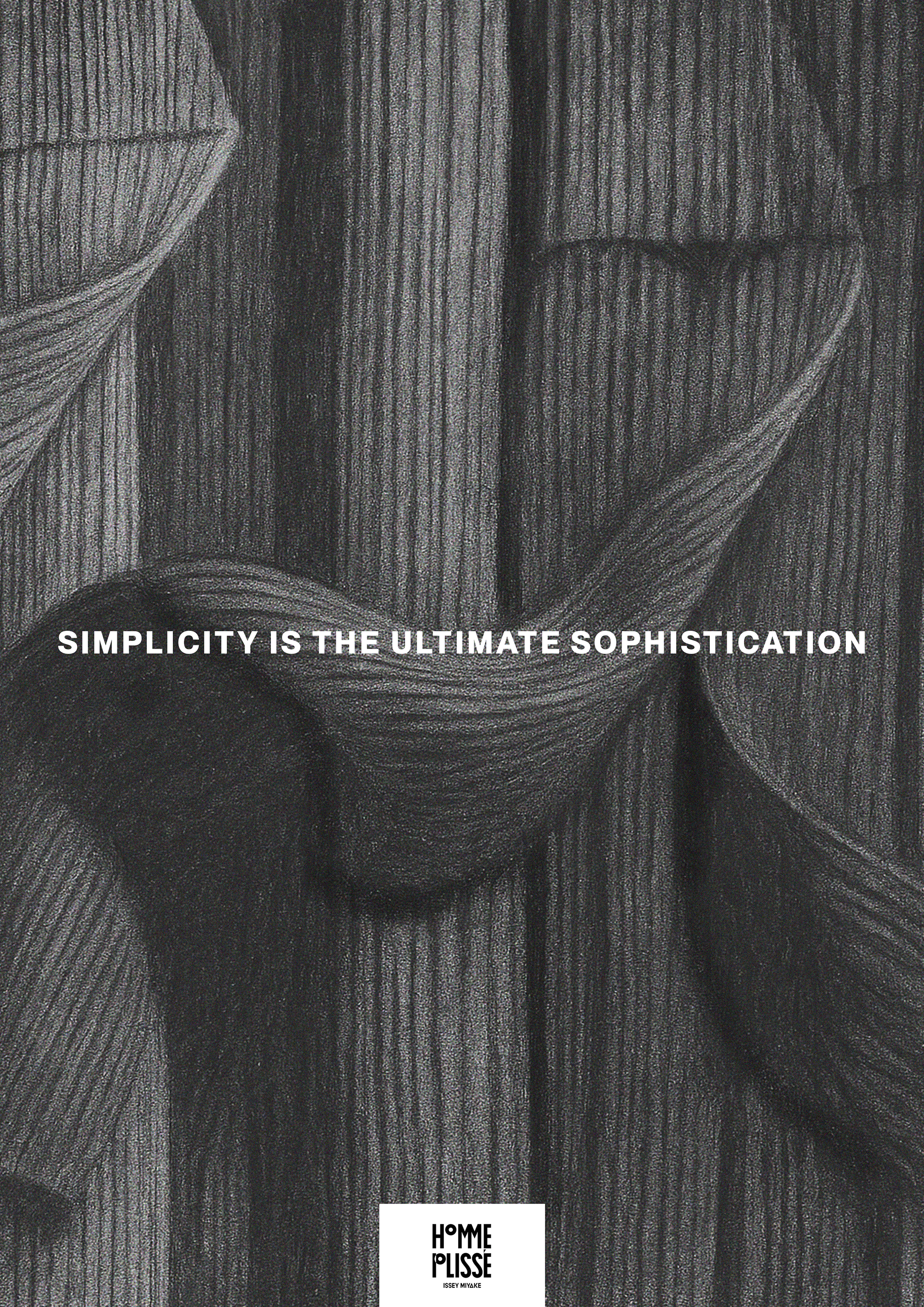 Affiche fictive réalisée au crayon puis retouchée, conçue pour Issey Miyake autour du drapé plissé.