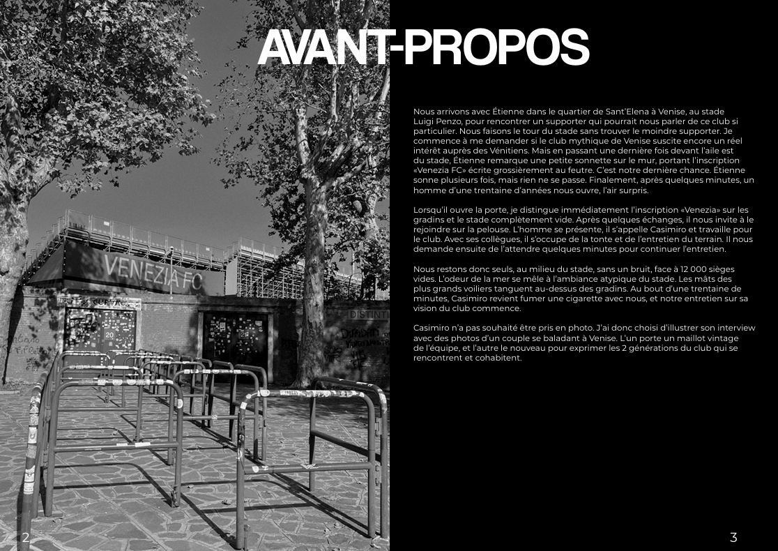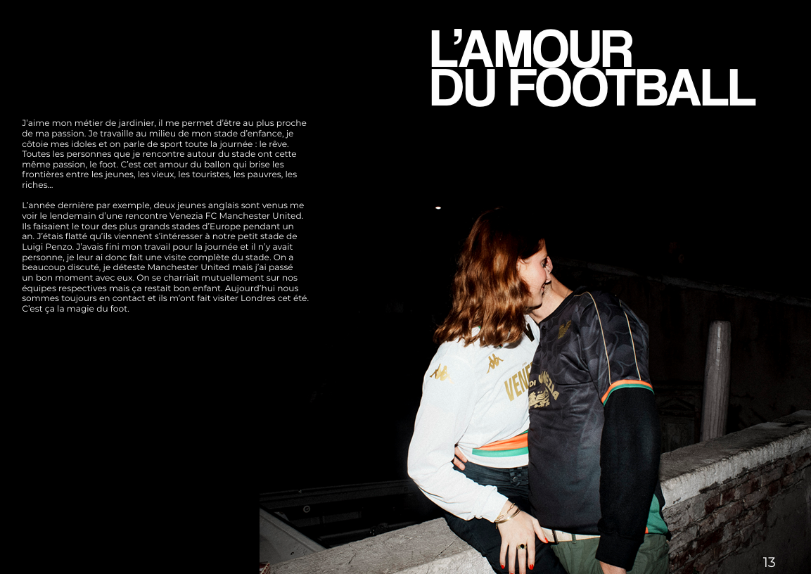 Dans le cadre d'un voyage d'étude à Venise avec Penninghen, j'ai pu interviewer un des jardiniers du stade de la ville. J'ai illustré cet entretien avec une série de photographies réalisée avec l'aide du photographe Paul Piroelle sous ma direction artistique.