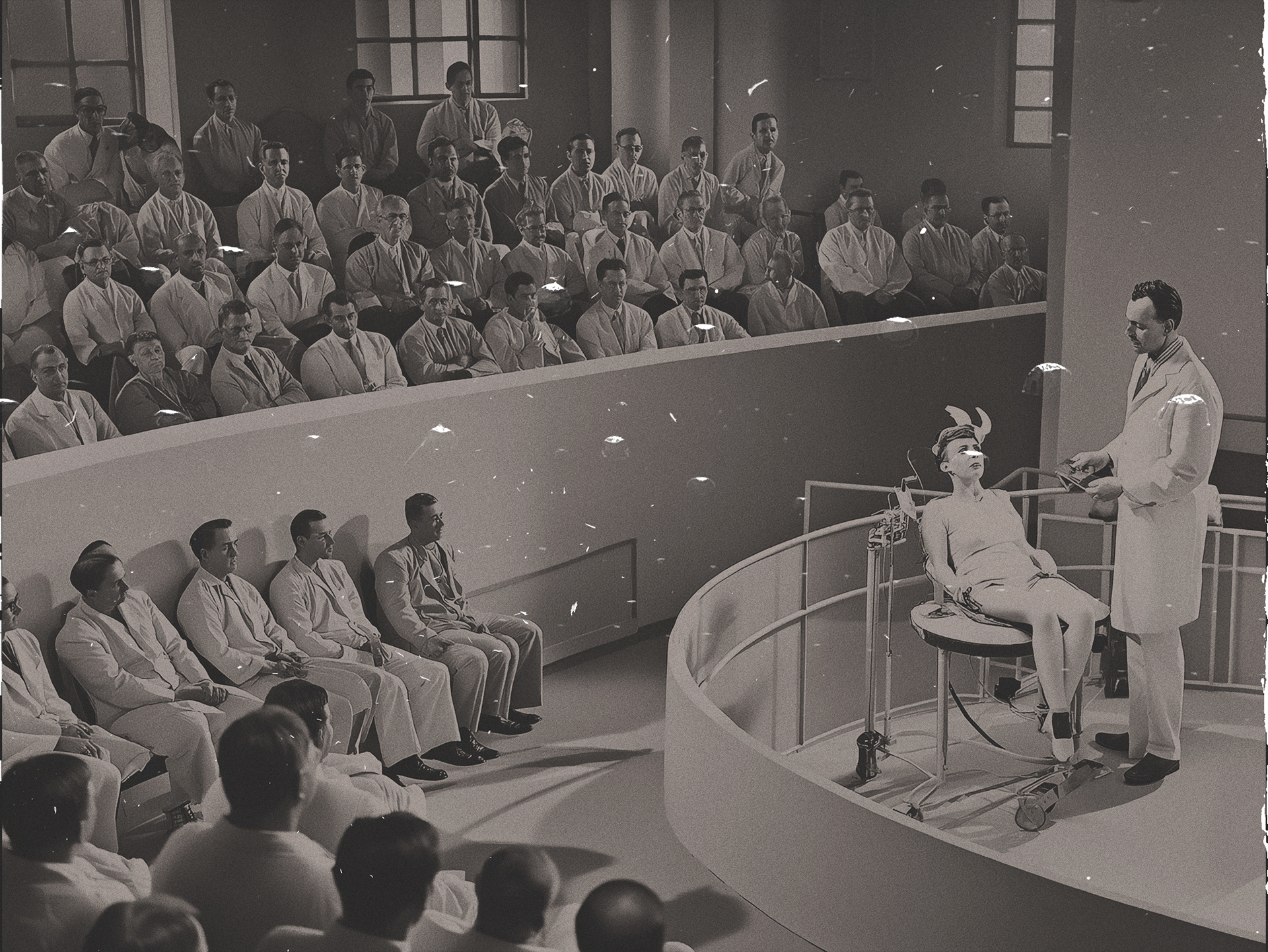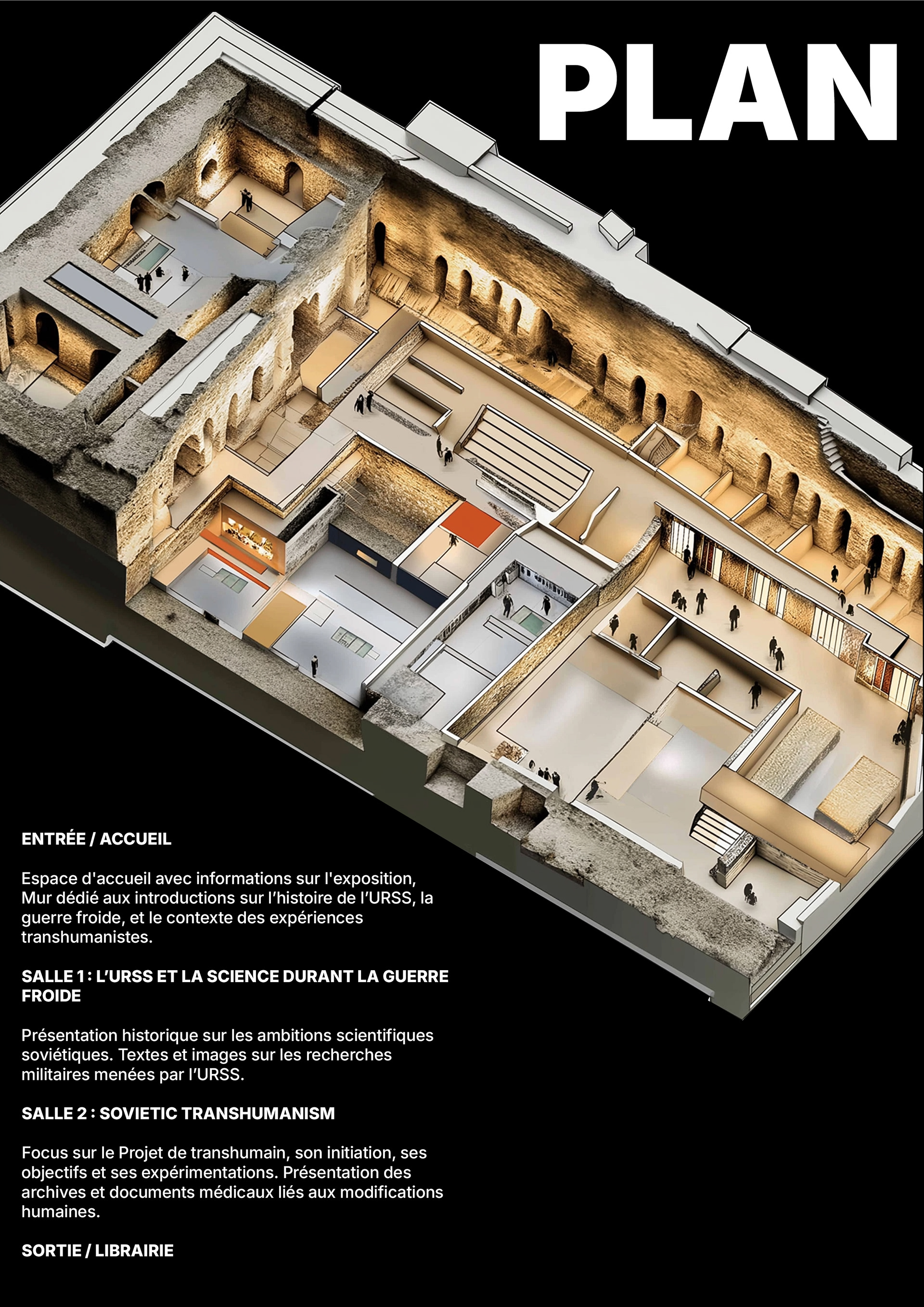 Rouge est une galerie fictive consacrée à l’histoire soviétique, imaginée à Paris. J’ai conçu son branding, sa charte graphique, ainsi qu’une exposition éphémère. Intitulée Sovietic Transhumanism, cette exposition photo raconte les terrifiantes expériences menées par des scientifiques russes en Sibérie pendant la Guerre froide. Ces expérimentations humaines avaient pour objectif de créer des transhumains, supposément supérieurs à l’homme. L’exposition est évidemment entièrement fictive, et toutes les images ont été générées avec l’intelligence artificielle Midjourney.