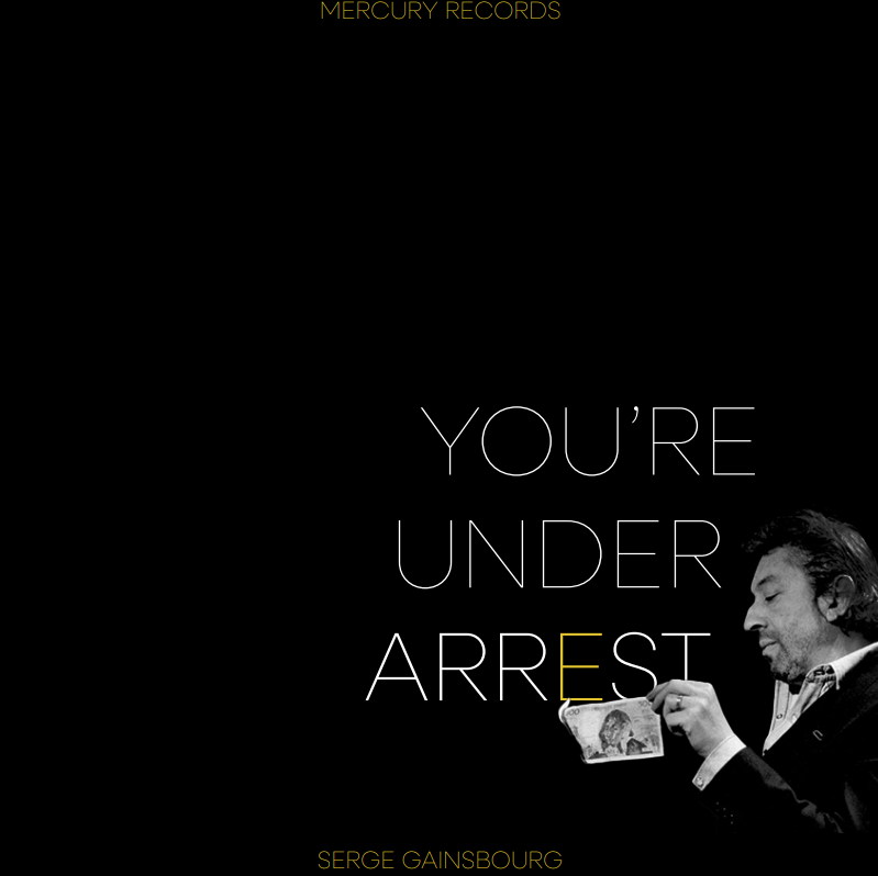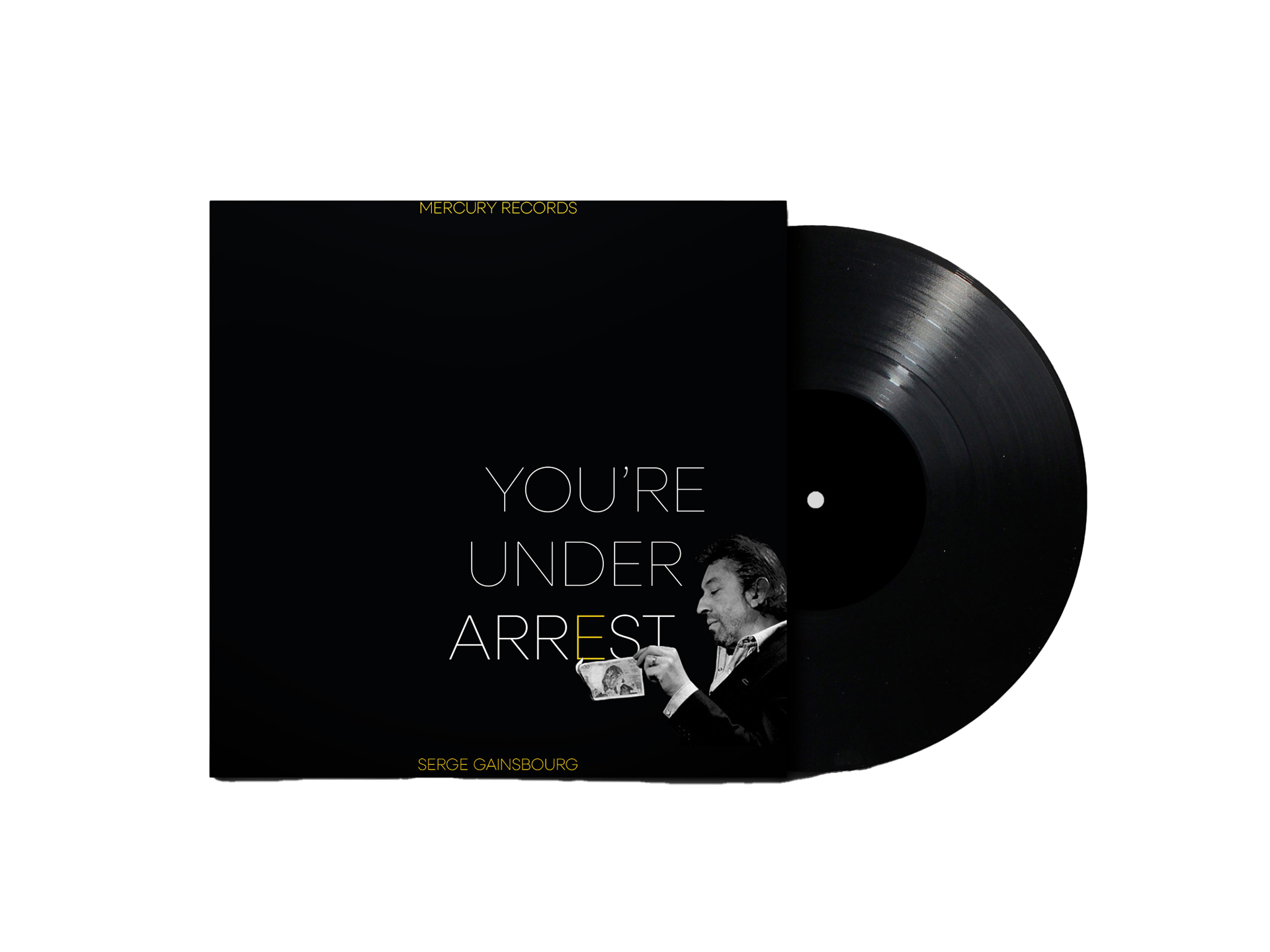 Travail en cours à penninghen de mise en page et typographie. Refonte graphique de l'album "you're under arrest" de Serge Gainsbourg.